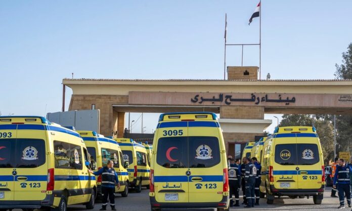 Ασθενοφόρα μεταφέρουν ασθενείς έξω από τη Λωρίδα της Γάζας, τη Δευτέρα 2 Φεβρουαρίου 2026.