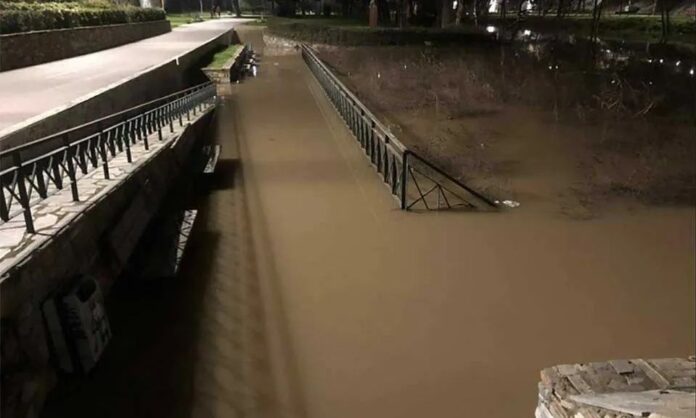 Η έντονη βροχόπτωση του τελευταίου 24ωρου ανέβασε τη στάθμη του νερού στην κοίτη του ποταμού μέσα στην πόλη
