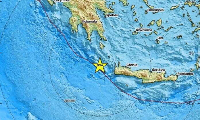 Το ακριβές επίκεντρο τη δόνησης εντοπίζεται στα 52 χλμ. νοτιοδυτικά των Αντικυθήρων.