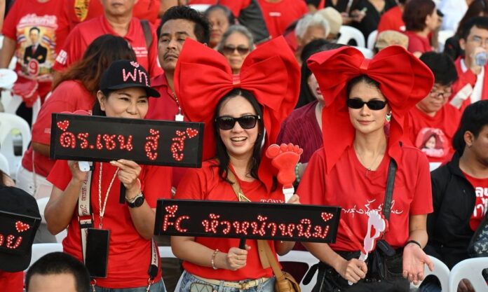Ο ηγέτης του Λαϊκού Κόμματος Natthaphong Ruengpanyawut χαιρετά τους υποστηρικτές του κατά τη διάρκεια προεκλογικής συγκέντρωσης στην Μπανγκόκ της Ταϊλάνδης, την Παρασκευή 6 Φεβρουαρίου 2026