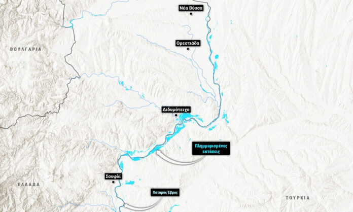 Εκτεταμένες εκτάσεις πλημμύρισαν στον Έβρο – Χάρτης δορυφορικής απεικόνισης