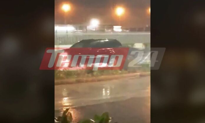 Όπως φαίνεται και σε βίντεο από το σημείο, το οδόστρωμα έχει γεμίσει με νερά, και τα οχήματα κινούνται με αργές ταχύτητες.