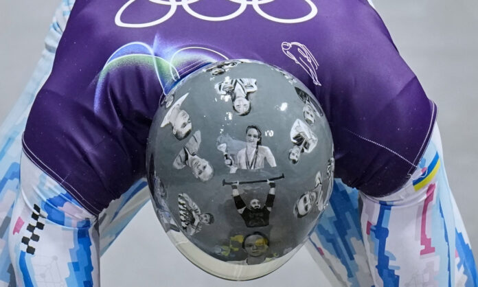 Ο Ουκρανός αθλητής Βλαντισλάβ Χερασκέβιτς φορώντας το κράνος που οδήγησε στον αποκλεισμό του