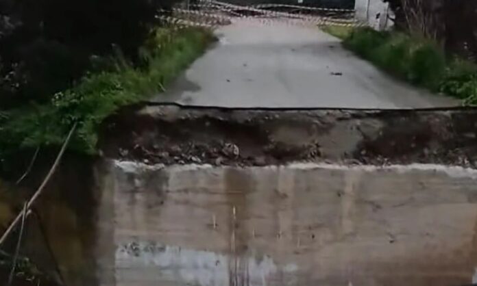 Σύμφωνα με μαρτυρίες, το οδόστρωμα στη γέφυρα έχει υποχωρήσει εντελώς. Η άσφαλτος έχει κοπεί κάθετα, δημιουργώντας απότομη υψομετρική διαφορά, γεγονός που καθιστά το σημείο απολύτως απροσπέλαστο.