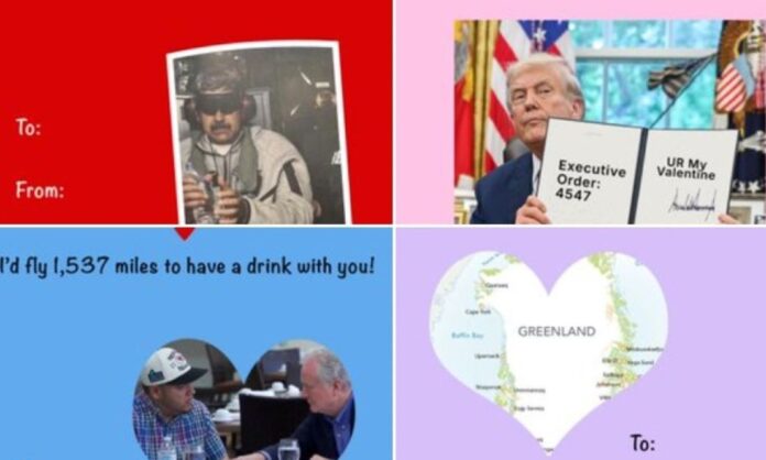 Σε ανάρτηση στο Χ ο Λευκός Οίκος δημοσίευσε μία κάρτα που έχει την εικόνα από την σύλληψη του πρώην προέδρου της Βενεζουέλας, Νικολάς Μαδούρο, ο οποίος έχει δεμένα μάτια. «Έχεις αιχμαλωτίσει την καρδιά μου», γράφει ο τίτλος της κάρτας.