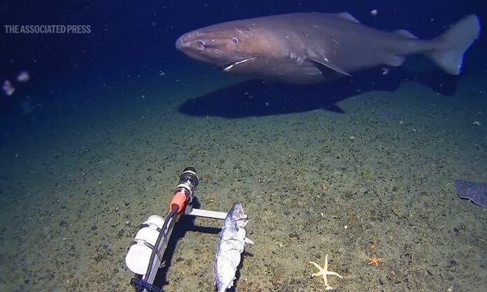 Ένας μεγαλόσωμος καρχαρίας που κολυμπούσε νωχελικά πάνω από τον άγονο βυθό στα παγωμένα νερά της Ανταρκτικής κατέγραψε κάμερα επιστημονικής αποστολής.