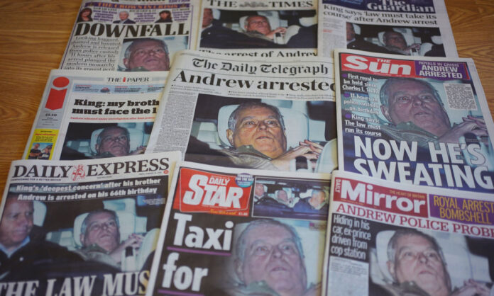 Η σύλληψη του έκπτωτου πρίγκιπα Άντριου και η άνευ προηγουμένου κρίση που αντιμετωπίζει η βρετανική μοναρχία έγιναν πρωτοσέλιδο σε όλο τον κόσμο.