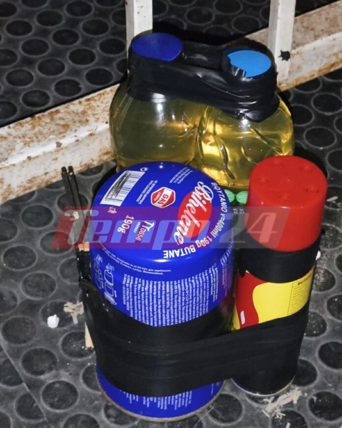 Ο εκρηκτικός μηχανισμός – που δεν πυροδοτήθηκε – περιελάμβανε γκαζάκι και δύο φιάλες εύφλεκτο υλικό