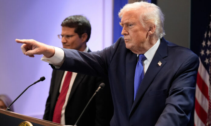 Ο αρχηγός του Γενικού Επιτελείου των Ενόπλων Δυνάμεων των ΗΠΑ Νταν Κέιν και ο πρόεδρος Ντόναλντ Τραμπ στο Μαρ-α-Λάγκο, το Σάββατο 3 Ιανουαρίου 2026.