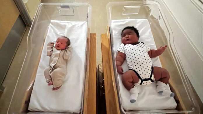 Τα δύο μωρά με την εμφανή διαφορά ήλθαν στον κόσμο την ίδια ημέρα
