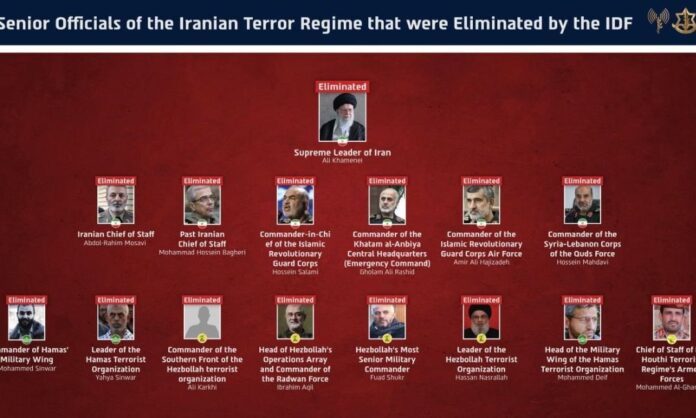 Την εξάλειψη όλης της ηγετικής ομάδας του Ιράν, αλλά και των στενών «συμμάχων» τους με επικεφαλής τον αγιατολάχ Αλί Χαμενεΐ ανακοίνωσε ο ισραηλινός στρατός, το βράδυ της Κυριακής.