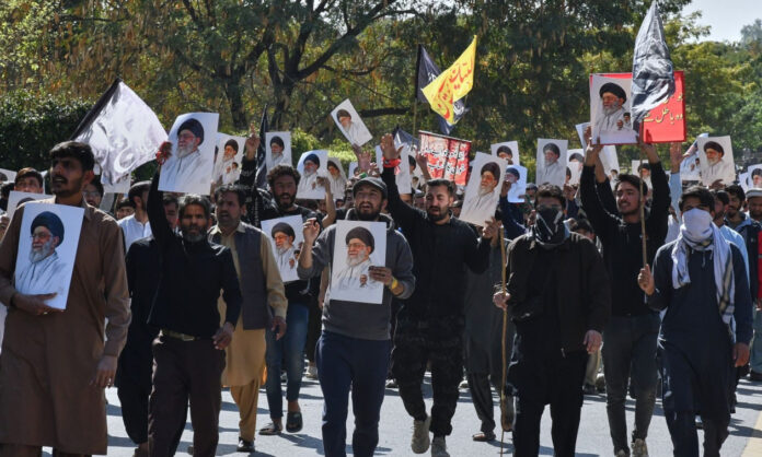 Στην πρωτεύουσα Ισλαμαμπάντ, σχεδόν 4.000 άνθρωποι διαδήλωσαν, πολλοί κρατώντας φωτογραφίες του Αλί Χαμενεΐ, ο οποίος σκοτώθηκε την προηγουμένη, σε αμερικανικούς και ισραηλινούς βομβαρδισμούς στην Τεχεράνη.
