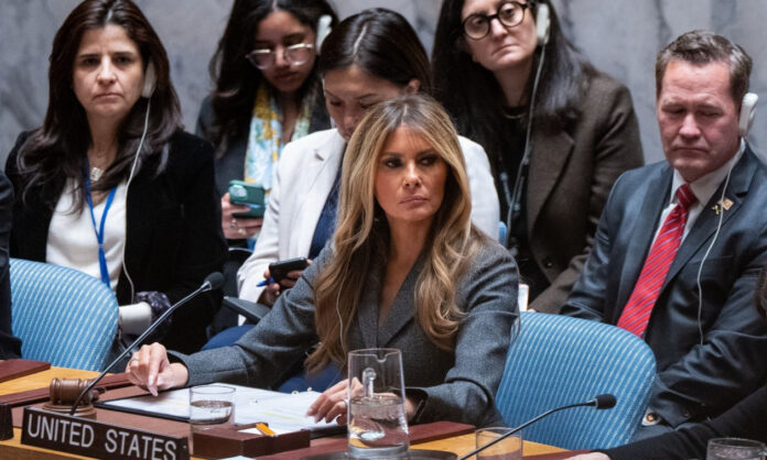 Η Πρώτη Κυρία των ΗΠΑ Μελάνια Τραμπ προήδρευσε της συνεδρίασης του Συμβουλίου Ασφαλείας του ΟΗΕ με θέμα «Τα παιδιά, η τεχνολογία και η εκπαίδευση σε καταστάσεις σύγκρουσης», στο πλαίσιο της εναλλασσόμενης προεδρίας των Ηνωμένων Πολιτειών για τον μήνα Μάρτιο. Πρόκειται για την πρώτη φορά που εν ενεργεία Πρώτη Κυρία προεδρεύει του Συμβουλίου.